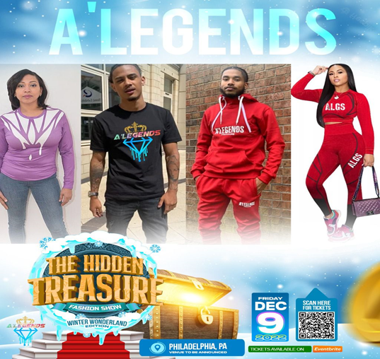 Thompson is now gearing up for The Hidden Treasure Fashion Show which will be held on Friday, December 9, 2022 in Philadelphia. It’s a winter wonderland edition with A’Legends branded sweatsuits, leggings and long-sleeve tops, among other items for all sizes and shapes, males and females.