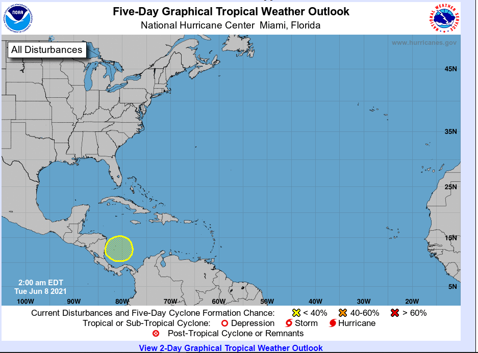 The National Hurricane Centre (NHC) in Miami, Florida is reporting a low pressure system developing in the Gulf of Mexico in the southwestern Caribbean Sea that has the potential to become a tropical storm.