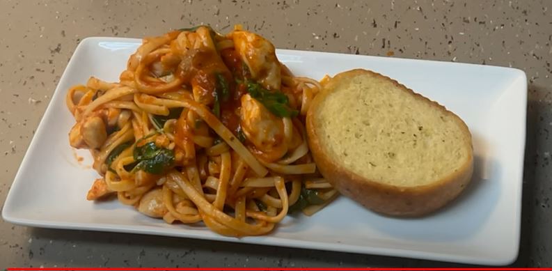 Add the tomatoes and their juices, chicken stock, 1/2 cup water, Italian seasoning and red pepper flakes and stir to combine. Add the bucatini or spaghetti, breaking to fit if necessary and stirring to separate the noodles.