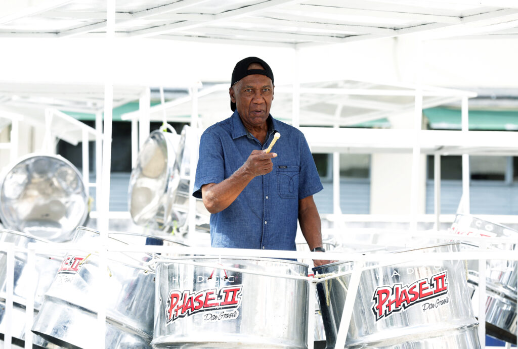 Sharpe often composes the tunes of choice for Phase II and has seven Panorama-winning melodies under his belt, with titles he composed and arranged for the band winning the festival in 1987, 1988, 2005, 2006, 2008, 2013 and 2014. During an interview with him at the pan yard in early January, band members were already at work on his arrangement. They were excited to hear the song, he said, adding, “The players enjoy how I do my own music.”