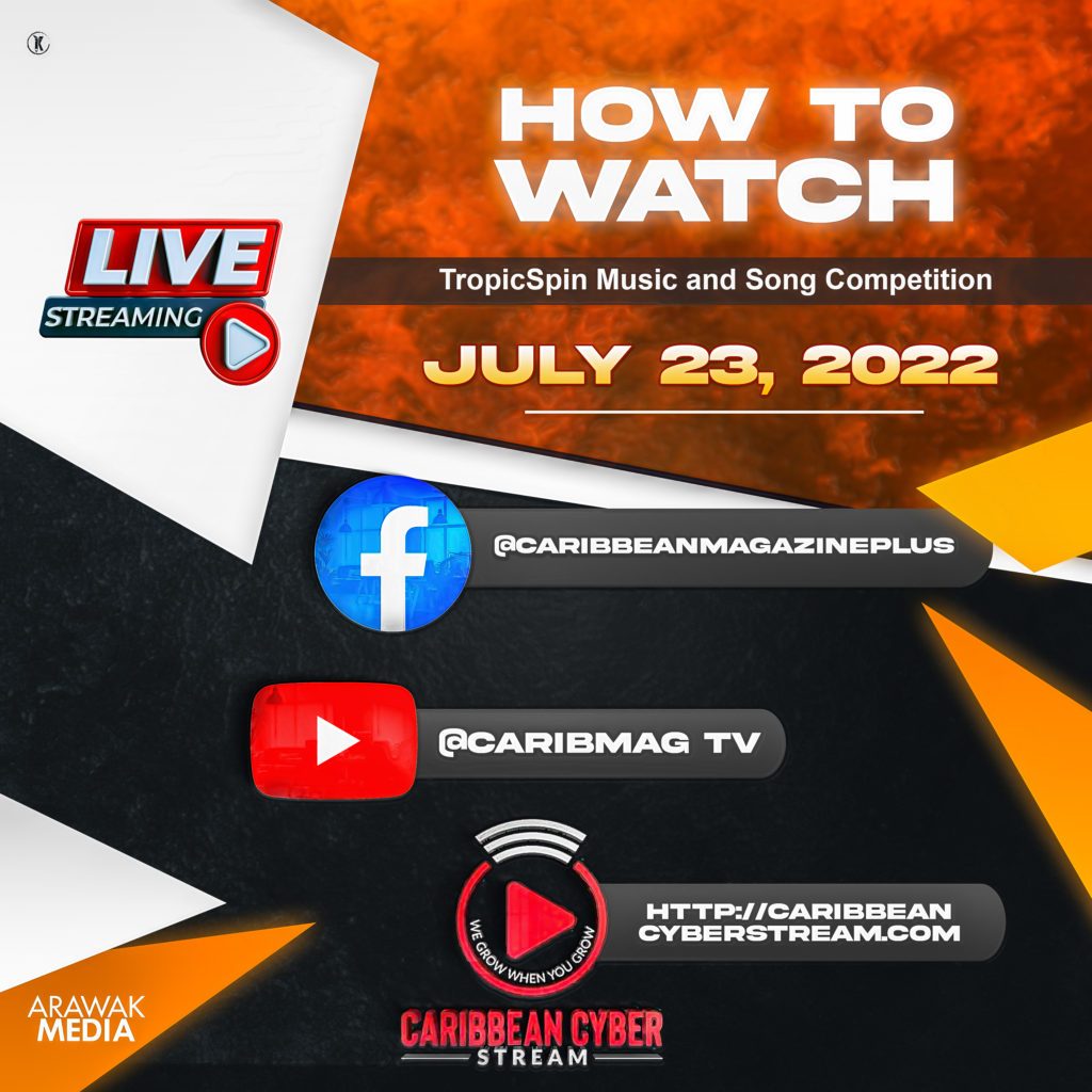 You can watch the TropicSpin Music and Song Competition on the Caribbean Magazine Plus Facebook page and YouTube Page, CaribMag TV in addition it will be streamed on the Caribbean Cyber Stream.