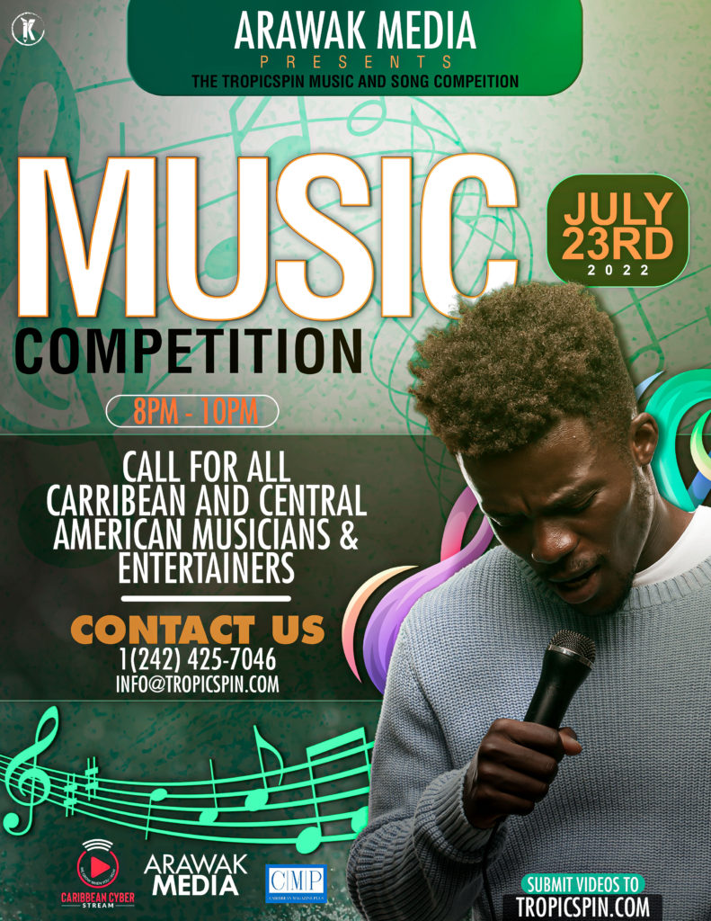 Arawak Media is calling for all amateur musicians and entertainers in the Caribbean and Central America to submit their music videos to be featured at the TropicSpin Music and Song Competition, July 23, 2022.