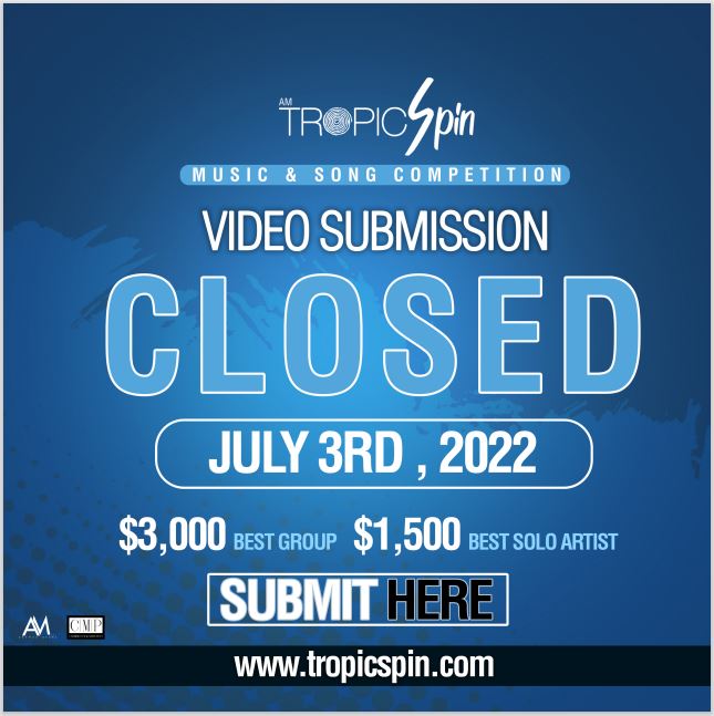 Submissions are open on TropicSpin.com and will end on July 3. All entrants have to do is go to TropicSpin.com and upload their music video to the website via a Google Link, Dropbox Link or YouTube link on a Word Document with their names, name of song and address along with email and telephone contact.
