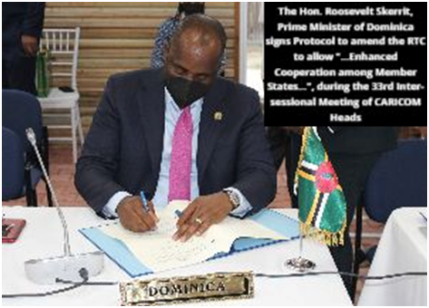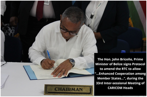 Caribbean Community including the CARICOM Single Market and Economy to allow Enhanced Cooperation among Member States and to address Related Issues” was approved at the recent Inter-Sessional Meeting in Belize.