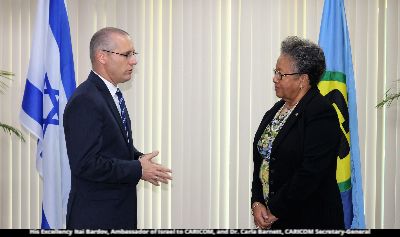 The Israeli Ambassador to CARICOM told Secretary-General Barnett that his country was keen to enhance its relations with CARICOM on Climate Change, Agriculture, Irrigation Technology, and Training.