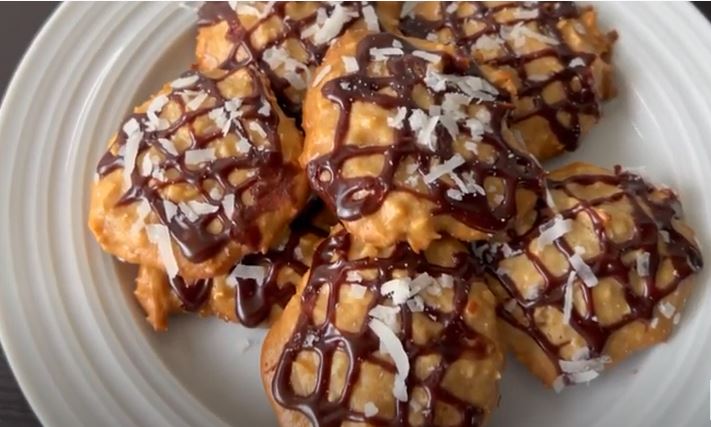 Recipe 1 14 oz bag sweetened shredded coconut sweetened coconut flakes (400 gms)1 14 oz can sweetened condensed milk½ cup all purpose flour¼ teaspoon salt optional2 teaspoons vanilla extract4 oz semi-sweet chocolate grated or roughly chopped, for dipping