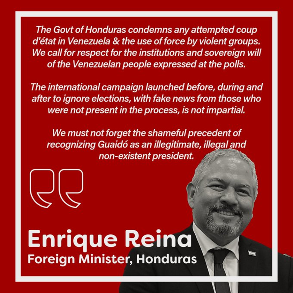 Previously, on August 2, the Organization of Eastern Caribbean States (ECS) issued a statement congratulating Nicolas Maduro on his victory and re-election to the Presidency of the Bolivarian Republic of Venezuela for a third term and urge that every effort be made towards national reconciliation.