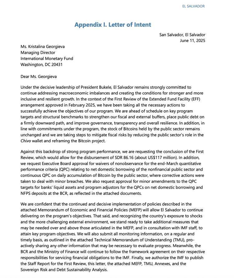 A letter of intent signed by El Salvador’s central bank president, Douglas Pablo Rodríguez Fuentes, and minister of finance, Jerson Rogelio Posada Molina, contained within the IMF report, confirmed the details: