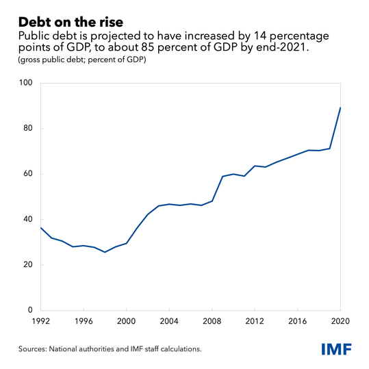 Because of this, we recommend a permanent reduction in the fiscal deficit (the difference between government revenue and spending), to be implemented over a 3-year period. This was agreed by the authorities and is in line with efforts made by other countries. It would put the debt-to-GDP ratio on a firm downward trend, creating the required fiscal space to implement the authorities’ ambitious social and inclusive growth agenda.