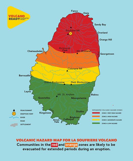 The original volcano map has Chateaubelair in orange, but it will be updated as the situation has changed.