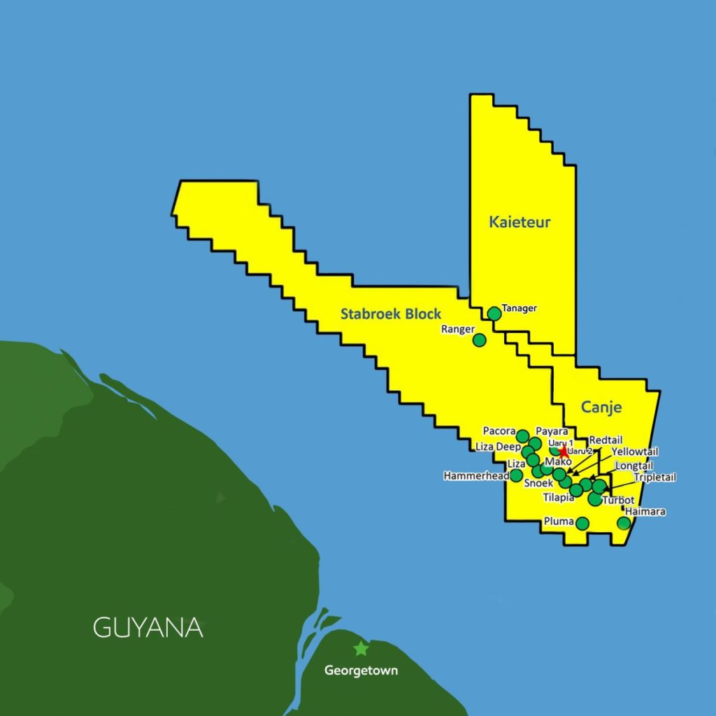 “The Stabroek Block is 6.6m acres (26,800 square kilometers). ExxonMobil affiliate Esso Exploration and Production Guyana Limited is operator and holds 45 percent interest in the Stabroek Block. Hess Guyana Exploration Ltd. holds 30 percent interest and CNOOC Petroleum Guyana Limited holds 25 percent interest.