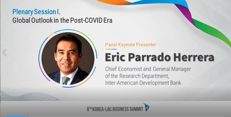 Eric Parrado Herrera, chief economist and general manager of the Research Department at the IDB, said at the summit for South Korea and LAC that while there were opportunities for development coming out of the COVID-19 pandemic and in the midst of the Russia/Ukraine War there are “complex, pre-existing conditions” that need to be addressed. He also said that the pandemic “exacerbated” these conditions.