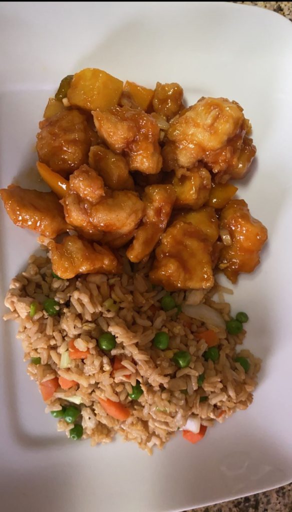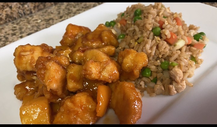 In a bowl, combine all sauce ingredients – sugar, ketchup, vinegar, soy sauce and garlic powder. Pour the sauce over the chicken.