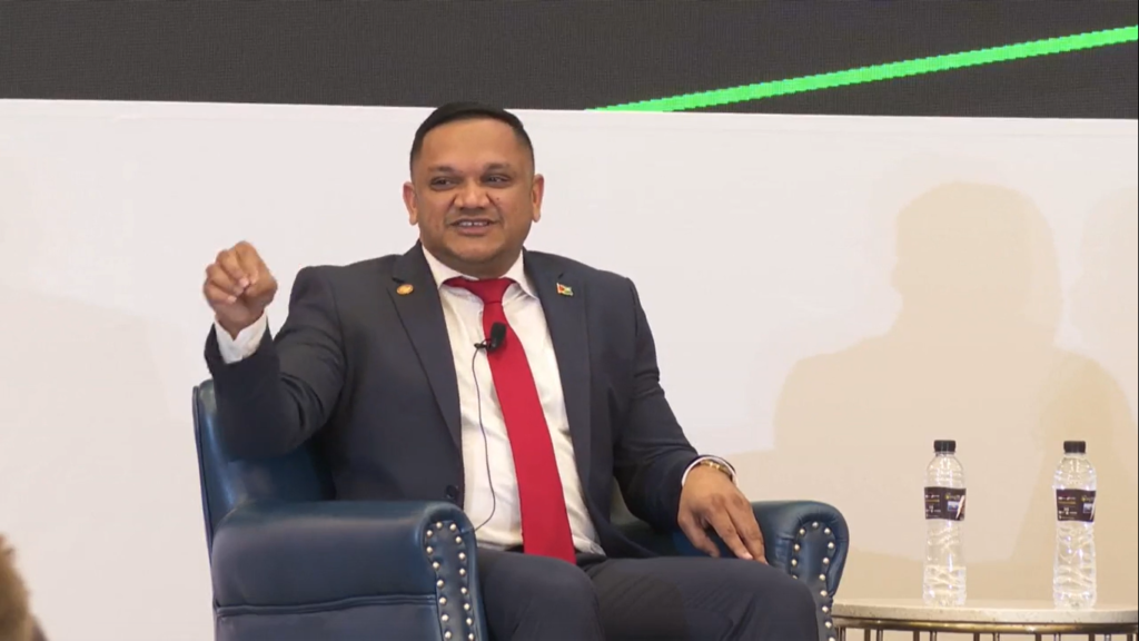 Minister of Natural Resources, Vickram Bharrat discussing investment opportunities in Guyana on day two of the International Energy Conference and Expo 2023.