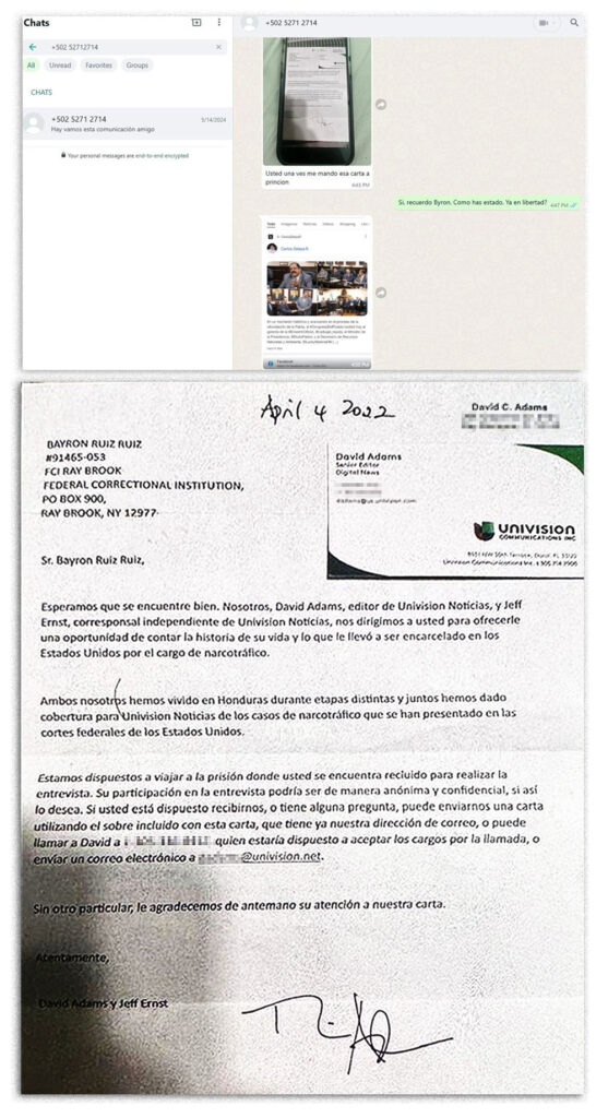 On April 4, 2022, we sent a letter requesting an interview to Ruiz, who was imprisoned in upstate New York. The letter was one of dozens we sent. They were part of an investigation that began in the fall of 2019 following the drug trafficking trial of Juan Antonio “Tony” Hernández, a former legislator and a brother of the then-president of Honduras, Juan Orlando Hernández.