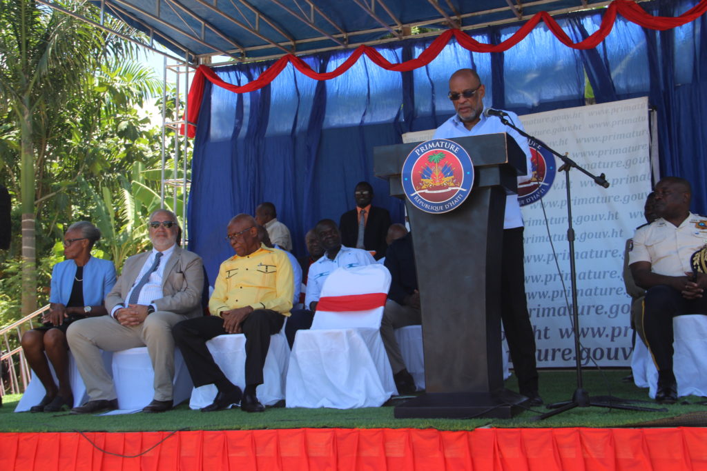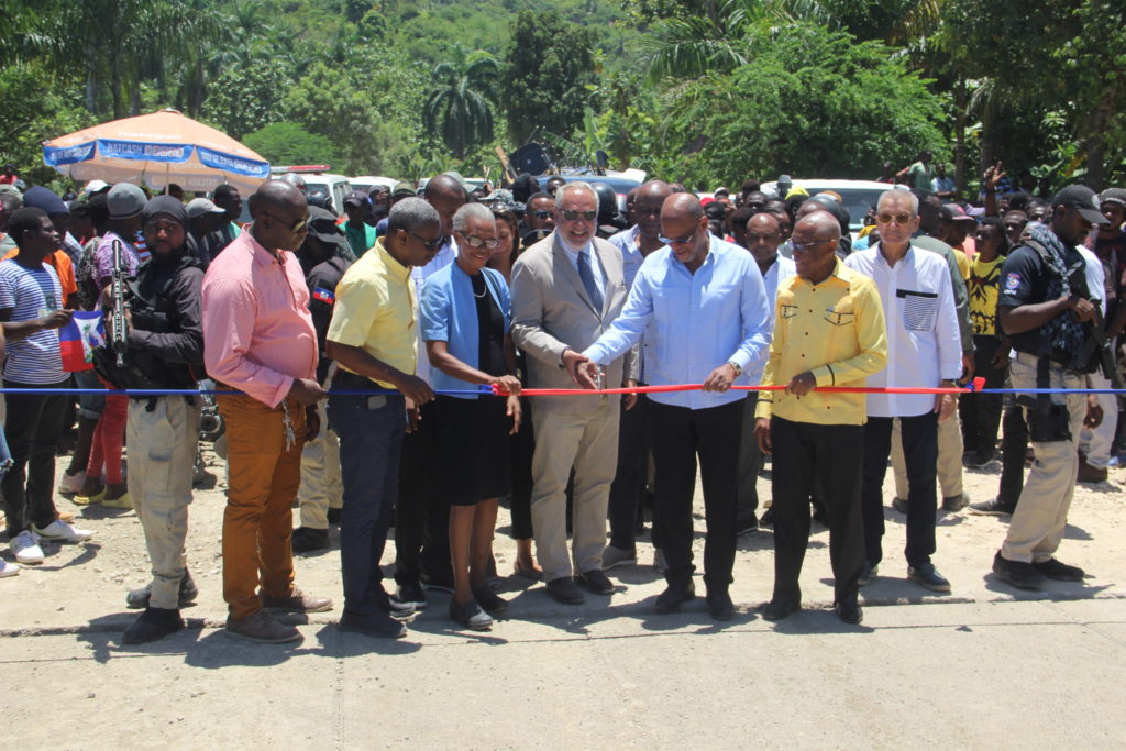 The Haitian Prime Minister, Ariel Henry, accompanied by the Minister of Public Works, Transport and Communications, Rosemond Pradel, proceeded to the inauguration of the temporary bridge over the Grand’Anse river. This work financed by the World Bank to the tune of three million USD restores the connection between the department of Grand’Anse and the rest of the country.