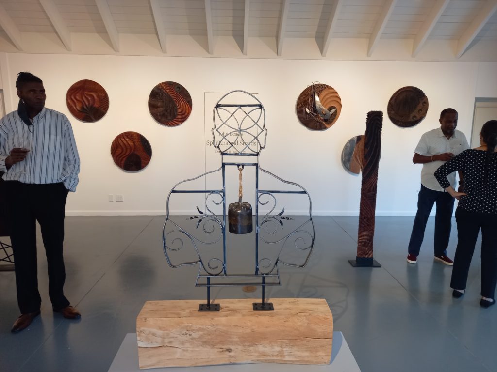 John Beadle, showcasing his latest works in his Splinters and Shards Solo exhibition at the TERN Gallery, told Caribbean Magazine Plus that he is “relieved” to be having this showing at the gallery. “I’ve been working on these for two years and I was just telling Lauren and Jodie that I have never seen them in this clean of a place. I’m seeing some different things in my own work as a result of this space.”