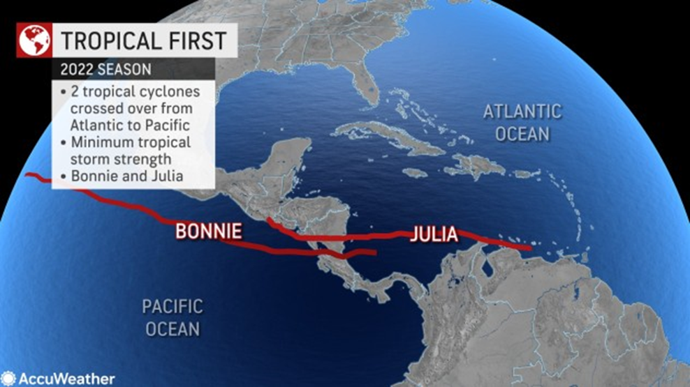 “For the first time in recorded history, two tropical cyclones moved from the Atlantic to the East Pacific in the same season and maintained at least tropical storm strength,” AccuWeather Senior Weather Editor Jesse Ferrell said. “Two tropical storms also crossed over in 1996 and 1988 but did not strengthen beyond tropical depression status in the Pacific.”