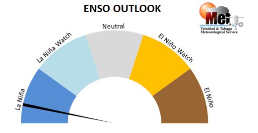 According to the Trinidad and Tobago Meteorological Office, which utilizes the El Niño-Southern Oscillation (ENSO) Outlook to indicate whether there is a probability of approximately 50 percent chance or greater for development of La Niña or El Niño, this year shows favour once again toward La Niña. The local Met Service says La Niña often proves to be its strongest during the period November to February, when conditions show to be wetter than usual.