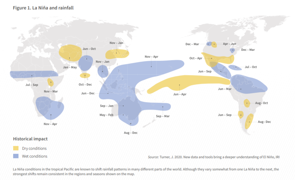 La Niña can help make atmospheric conditions more favourable for tropical cyclones (tropical depressions, tropical storms and hurricanes) and often enhances rainfall activity in the following dry season. And while La Niña trends show it to occur every three to five years, it can occur consecutively ever so often, while some events occur over period of nine to twelve months, it can last for up to two years.