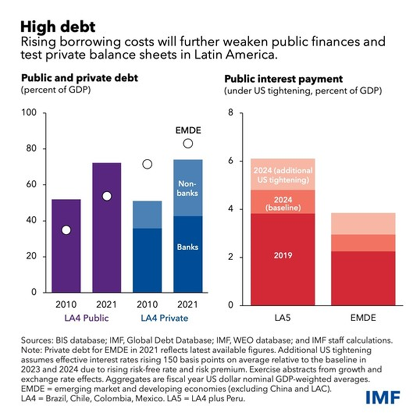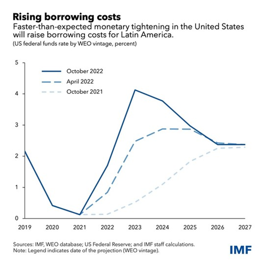 As Latin American countries continue to grapple with the effects of two previous shocks, the pandemic and Russia’s invasion of Ukraine, they face a third shock: the tightening of global financial conditions.