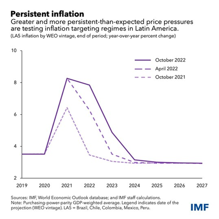 Also, price pressures have recently broadened, affecting items of the consumption baskets beyond food and energy. This has been the case in Brazil, Chile, Colombia, Mexico and Peru, where inflation recently reached a two-decade high of 10 percent and is testing the hard-won credibility of inflation targeting frameworks.