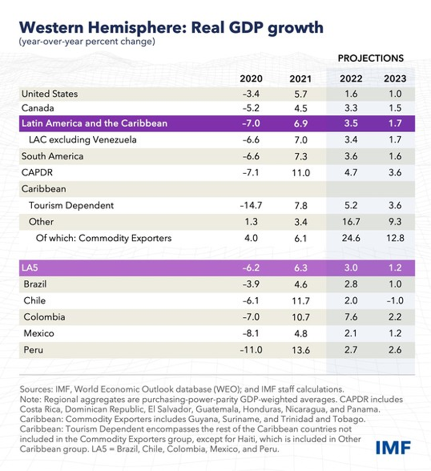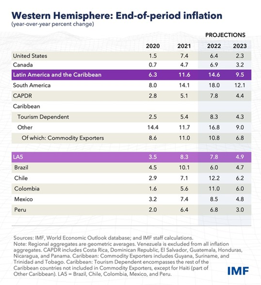For Latin America, these factors result in a deceleration in activity as higher borrowing costs weight on domestic credit, private consumption, and investment.