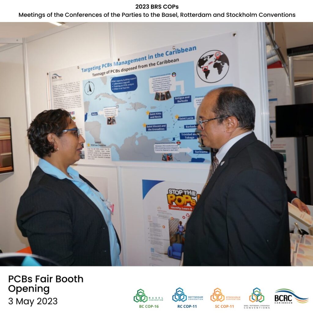 The Caribbean centre plays a pivotal role in this year’s conference, with the unveiling of a PCBs Fair, highlighting the dangers of Polychlorinated biphenyls (PCBs), and with the BCRC-Caribbean’s booth themed POPsville. On hand for the ribbon cutting was Trinbagonian, Keima Gardiner who holds the post as President of the Bureau of the Conference of the Parties (COP) to the United Nations’ (UN’s) Stockholm Convention on Persistent Organic Pollutants (POPs).