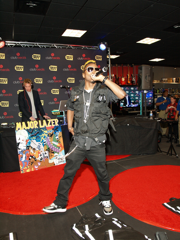 Dr. Dre was there launching Club Beats. It was a star-studded event. Even Will.I.Am, Robin Thicke, Lady Gaga, Timbaland and many others made special appearances or performed. The post by Major Lazer was of a pop-up event in a branch of the US electronics store, Best Buy. It shows a video of Skerrit Bwoy and a female gyrating to the group’s hit track “Pon De Floor” featuring Jamaican Dancehall Artiste Busy Signal. As a natural hype man himself, Skerrit Bwoy can also be heard shouting expletives into the microphone while Diplo and Jillionaire are seen in the background providing the music.