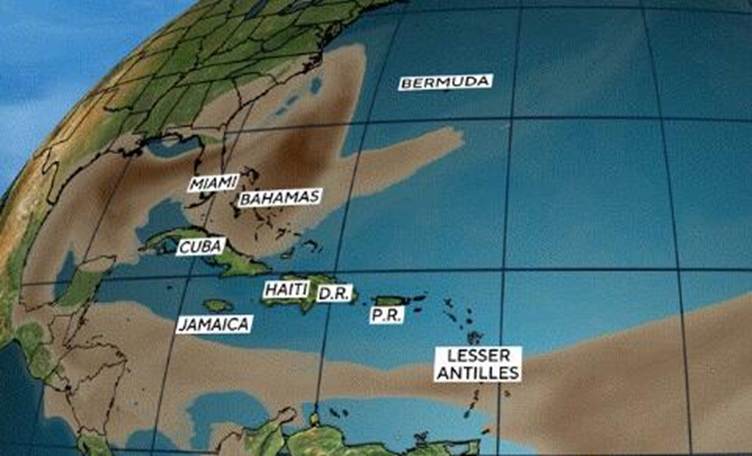 A massive plume of Saharan dust is covering the Caribbean as it makes its way toward to the United States, where it is expected to impact the Gulf region and other areas.