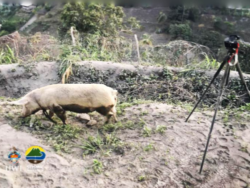 On the Centre’s Facebook page, they were sure to make mention of him, giving him the unofficial official title as their “pet” pig, and the fitting nickname Tremor. The team says he has been popping around the Belmont Observatory every morning since explosive eruptions began on April 9.