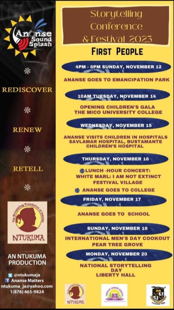 The 2023 staging of Ananse SoundSplash Storytelling Festival and Conference, will exuberantly locate itself within sustainable economic and social growth by celebrating stories of first peoples of Jamaica. It will also highlight how we honour the aspirations and accomplishments of people, by putting their needs first.