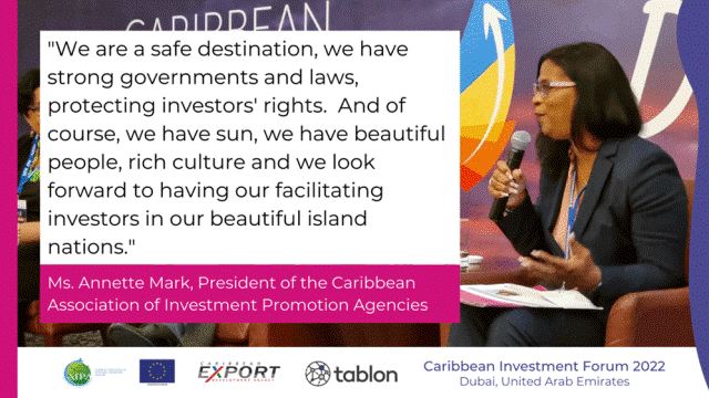 According to Annette Mark, President of the Caribbean Association of Investment Promotion Agencies, “Those are our main drivers for investment promotion throughout the Caribbean”.