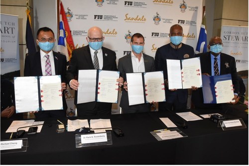 Sandals Resorts International (SRI) today signed a Memorandum of Understanding with The University of the West Indies (The UWI) and Florida International University’s (FIU) Chaplin School of Hospitality & Tourism Management to create the Gordon ‘Butch’ Stewart International School of Hospitality & Tourism. It will become the first institute of higher learning aimed exclusively at the study of hospitality and tourism in the Caribbean, where the industry is a main economic driver.
