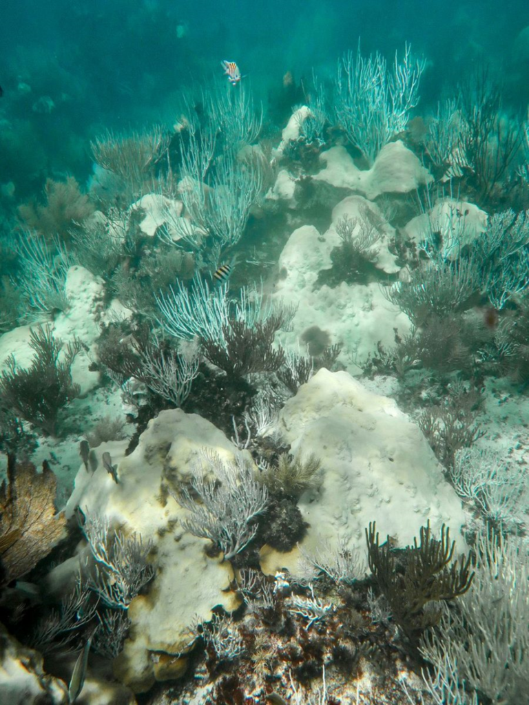 Another apparent sanctuary was Mexico’s Limones Reef, where large groups of branching elkhorn coral held onto their deep orange color. According to temperature sensors within Limones Reef, the water was a bit cooler than in other reefs—still warmer than normal, but not as deadly.
