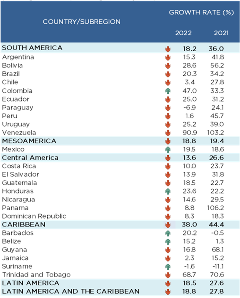 According to the report, the shock caused by the Russian invasion of Ukraine “further increased the prices of LAC’s main export commodities.” However, “in most countries, the uptrend changed direction in the middle of the year in response to slowing global demand, forecasts of low growth, and the appreciation of the US dollar.”