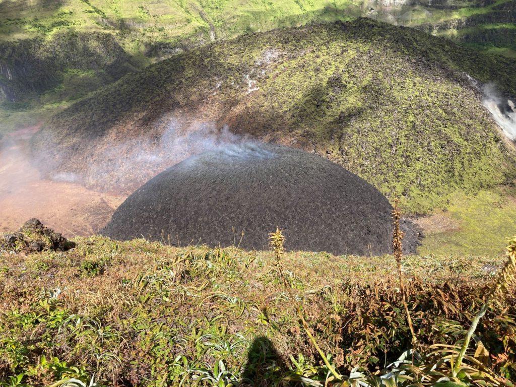 Despite this the alert level remains at Orange for the island. The volcano continues to exude magma on the surface and steam can still be observed.