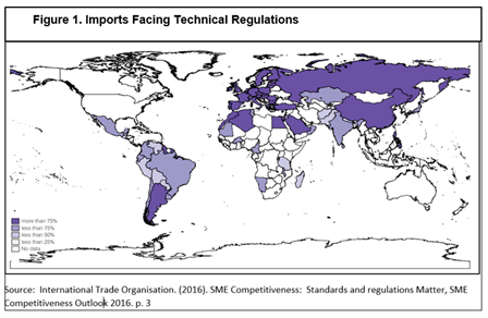 According to Business Development Bank of Canada (2020), a Technical Barrier to Trade (TBT) “is any regulation, standard or procedure that could make exporting goods to another country difficult”. TBT’s, specifically standards and regulations are the most common, highly frustrating and at times unwieldly barriers experienced by SMEs.