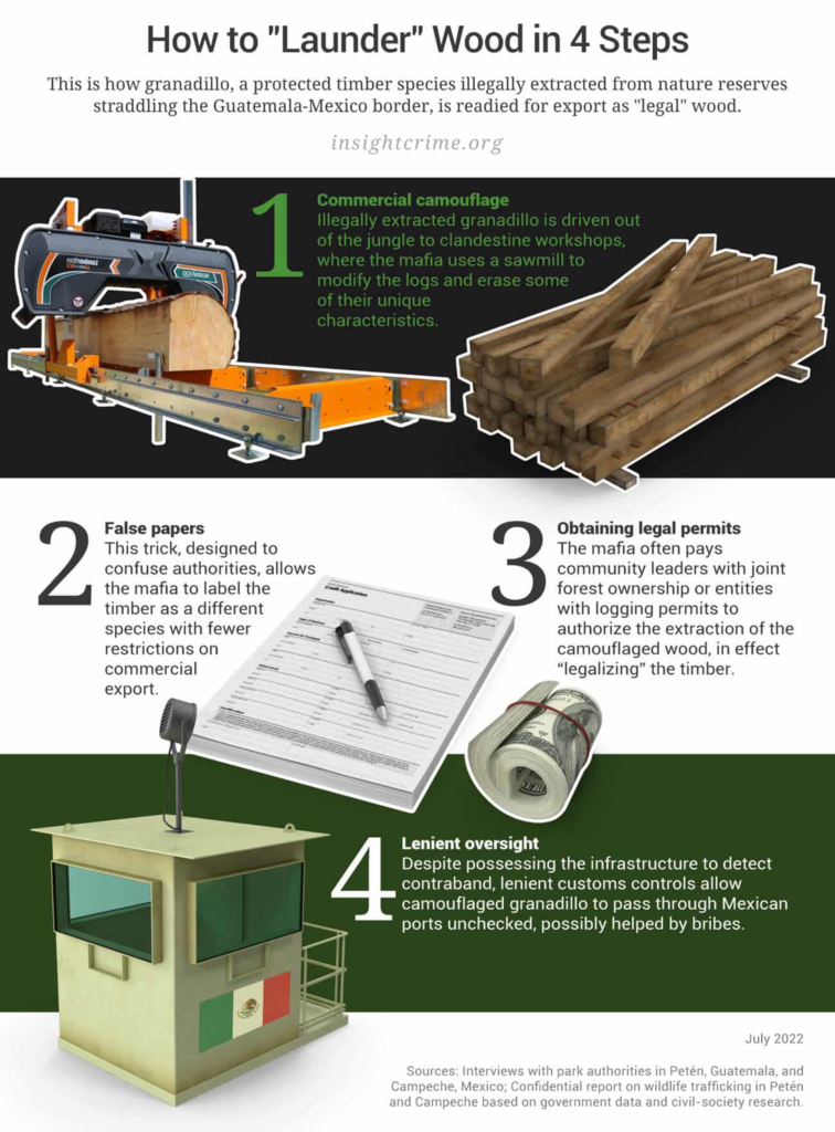 This step requires the participation of government officials, either willingly or by omission, or that of the communities with collective ownership of the forest, many of them in Candelaria, according to the same independent assessment by environmental groups.