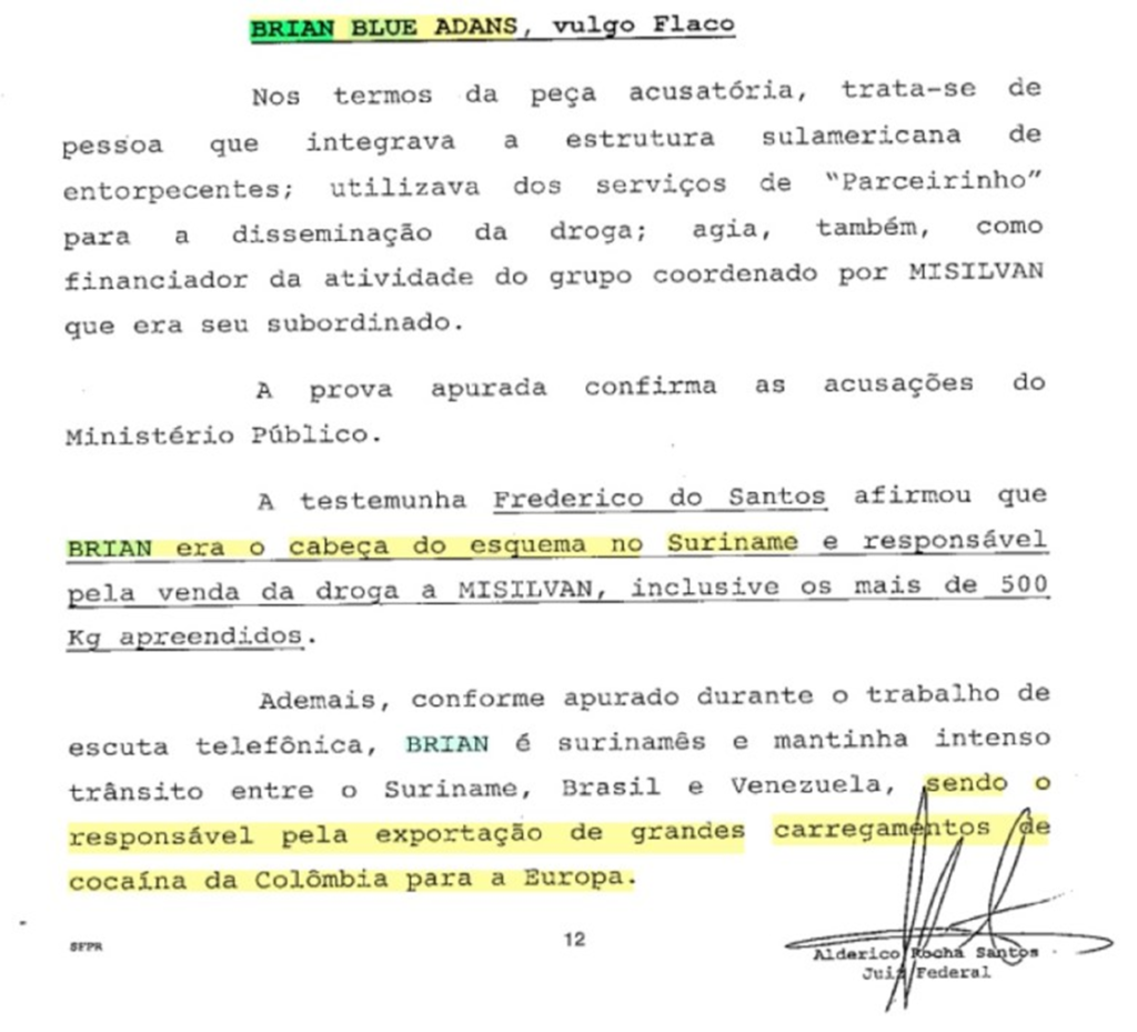 Brazilian authorities dismantled much of the Brazilian part of the network. Despite strong suspicions that Blue was the Surinamese trafficker referred to as “Magro” in taped conversations, the Brazilian investigators did not bring charges against him.