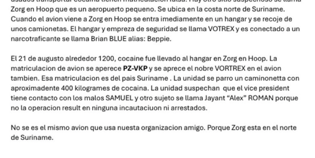 Wortel also said he asked “Bouta” and “Dino” for help with the shipment. Police believed Wortel was referring to Desi Bouterse, who had been convicted of cocaine trafficking in absentia in the Netherlands in 1999, and his son, Dino, who was later convicted of cocaine trafficking in the United States in 2015, where he is still in prison.