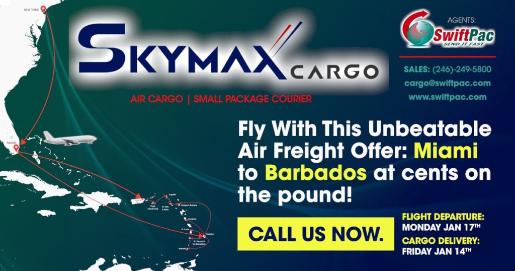 Sky-Max Cargo and Logistics Services is rolling out its Test Flight, and to celebrate, it’s offering a greatly reduced inbound rates on its flight from Miami, Florida to Bridgetown, Barbados, set for Monday, January 17, 2022.