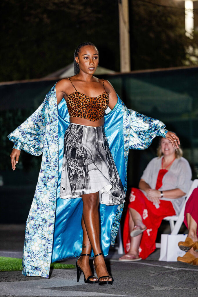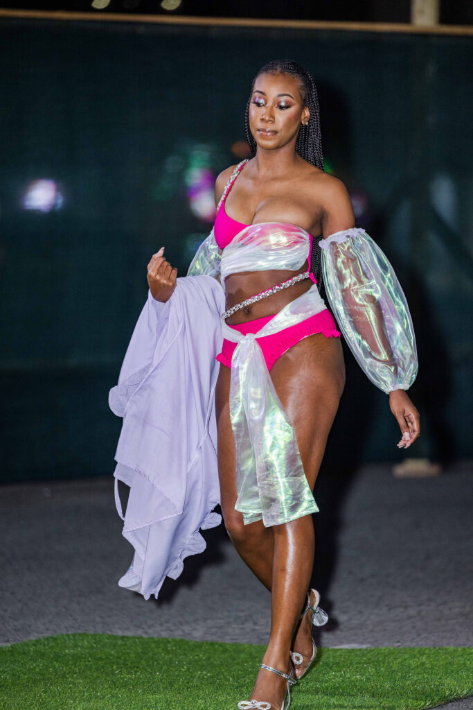Frazer, along with two of her mentees Akeem Stanley and J’Quelah Callwood featured pieces from their individual collections. Stanley and Callwood presented a 5-piece collection to introduce their design aesthetic to the community while Frazer showcased a 50-piece collection that spoke to swimwear, resortwear, costume and avant garde designs.