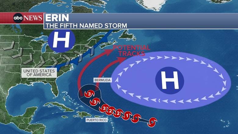 Because Erin is still many days away, meteorologists in Bermuda and the U.S. East Coast will be watching the storm closely, as any deviation east or west could lead to significant impacts.