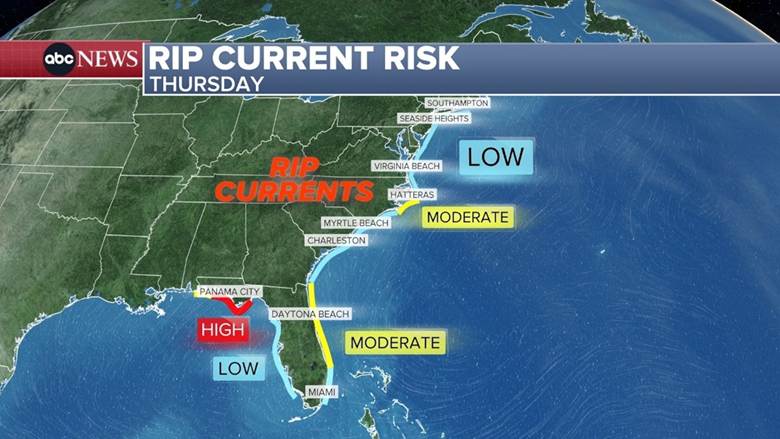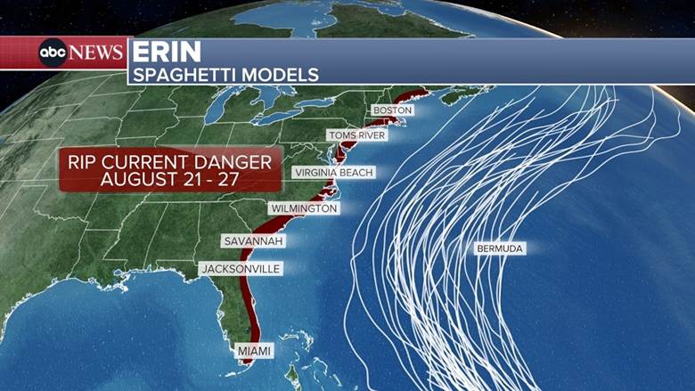 While a landfall in the U.S. isn’t expected, there is a chance Erin could bring a few light rain showers to parts of the East Coast. And for those heading to the beach on the East Coast, Erin will bring a high risk of rip currents from Aug. 21 to Aug. 27.