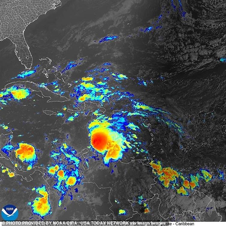 The National Hurricane Center issued the alert on Tuesday at 11am ET, revealing the system known as Invest 98L has developed a clear center and organized thunderstorms, meaning it has become a tropical storm.