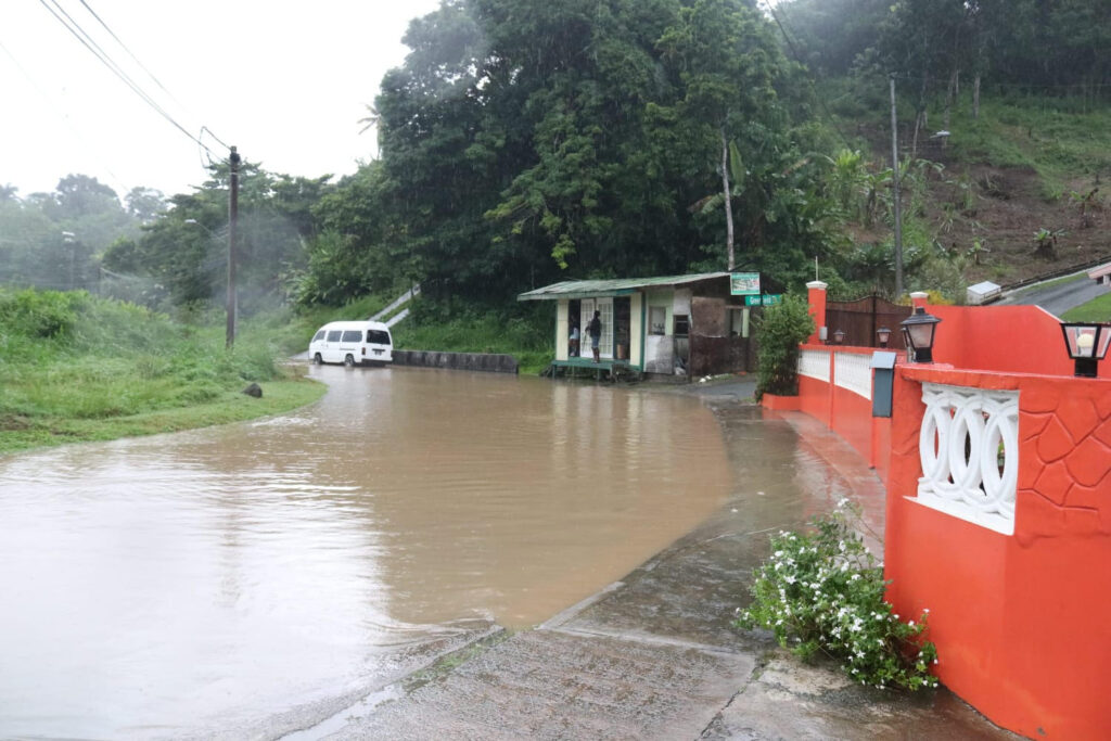 By 9.45am, rainfall had accumulated to 59.8mm, with a rainfall rate of 135mm per hour recorded. Commuters headed to work and students included were caught in what appeared to be mayhem. Students and teachers at the North Eastern College, located in Sangre Grande were seen to be wading through waters within the compound while taking a drenching from above.