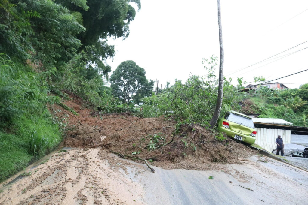 In Trinidad, Bon Air Gardens located at the foothills of the Northern range, saw its road ways turn into raging waters coming down from the hillsides, slamming into walls of homes and even pushing vehicles in its path. Quickly several roadways were reported to have been washed away, while landslides along Balandra Road, Toco rendered the area cut off and impassable.