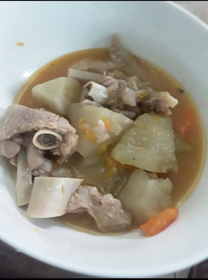 To a large pot – add turkey and enough water to cover meat. Allow to boil for about 1 hour. Drain and fill pot with clean water. Cook until turkey is tender. Season well with salt, pepper and garlic. Add thyme, onions, sweet potatoes and pumpkin.