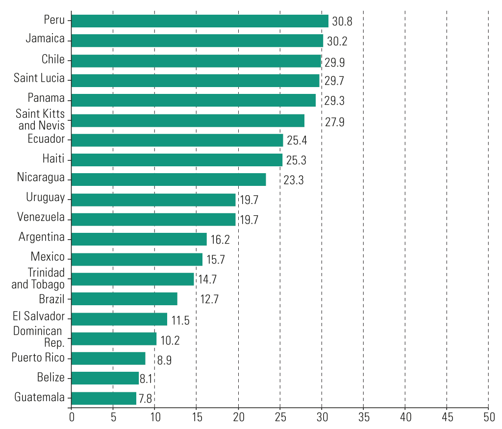 In Latin America and the Caribbean, 65 percent of the population has access to safe water (delivered to the home, available when needed and free from contamination), 31 percent have access to at least a basic service (an improved source accessible within a 30-minute walk) and 4percent have access to limited (distant, more than 30 minutes away), unimproved (not free from contamination) or surface water (WHO/UNICEF, 2017). However, the closing of gaps in access has mainly occurred in urban settings, while clean water sources and improved sanitation are difficult to access in rural and peri-urban areas. In rural areas of Latin America and the Caribbean, access to piped water in the home increased from 37percent to 68percent between 1990 and 2015, while in urban areas it rose from 88 percent to 94 percent (WHO/UNICEF, 2017).